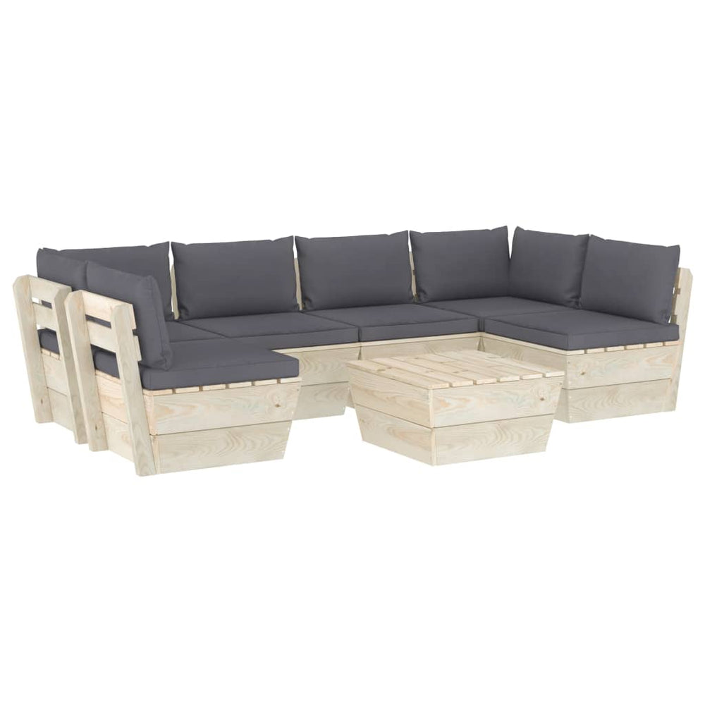 De tuinmeubelset is gemaakt van geïmpregneerd vurenhout waardoor hij duurzaam en stabiel is. Deze set heeft een massieve constructie en vereist weinig onderhoud. Het stevige tafelblad is ideaal om eten en drinken binnen handbereik te houden. Dankzij de 100% polyester bekleding en dikke vulling zijn de palletkussens zacht en zeer comfortabel. Bovendien maakt het modulaire ontwerp het mogelijk om de set in elke gewenste samenstelling te plaatsen.