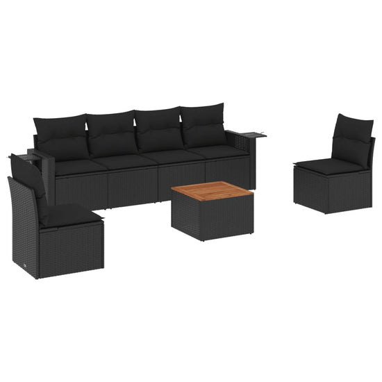 - Materiaal: PE-rattan, gepoedercoat staal en massief acaciahout met olieafwerking