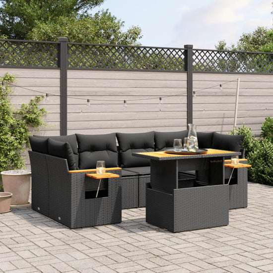 - Materiaal: PE-rattan, gepoedercoat staal en massief acaciahout met olieafwerking