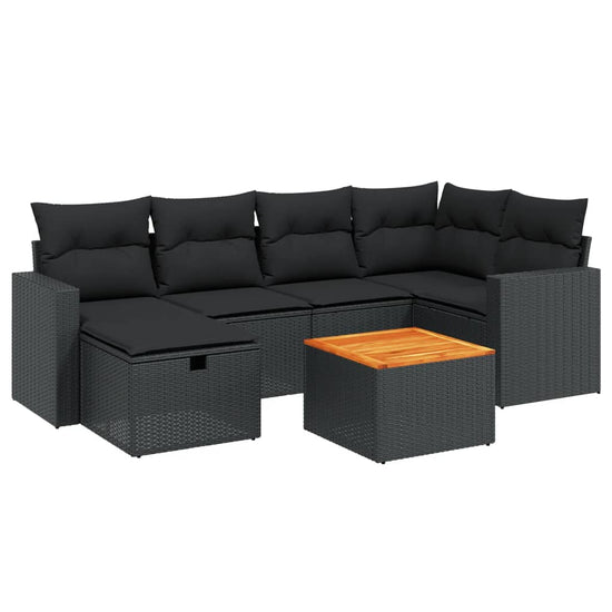 - Materiaal: PE-rattan, gepoedercoat staal en massief acaciahout met olieafwerking
