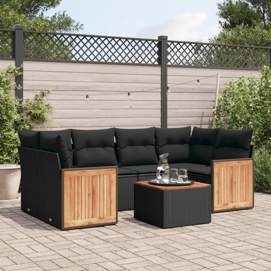- Materiaal: PE-rattan, gepoedercoat staal en massief acaciahout met olieafwerking