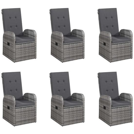 De eettafel is gemaakt van massief acaciahout met een olieafwerking, waardoor hij stabiel, duurzaam en eenvoudig te onderhouden is. De eetstoelen, met een gepoedercoat stalen frame bedekt met weerbestendig PE-rattan, zijn stevig en gemakkelijk schoon te maken. Door aan de knop aan de zijkant te trekken, kan je de rugleuning naar wens verstellen. Hij wordt geleverd met comfortabele, dik gevoerde kussens. De onderhoudsarme polyester hoezen kunnen verwijderd en gewassen worden.