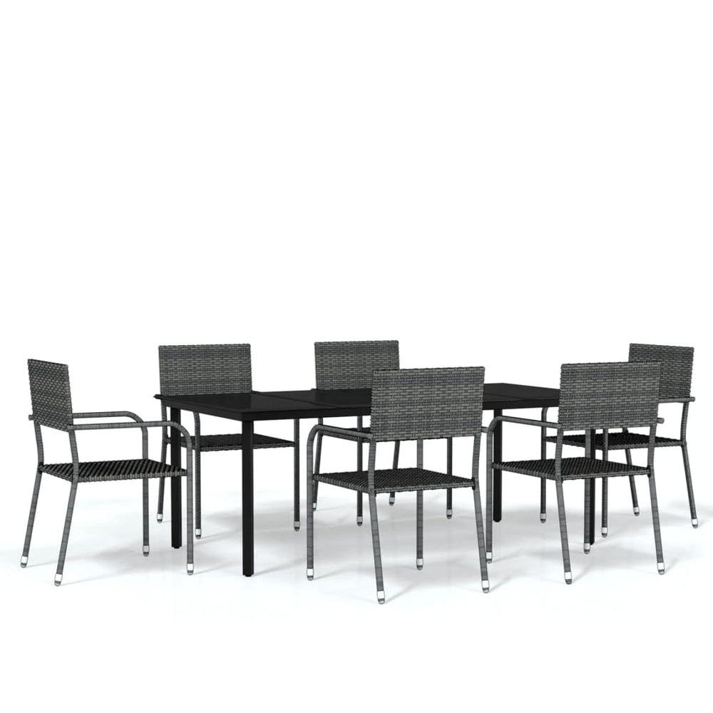 De praktische buiteneetset heeft een stalen frame waardoor hij sterk en stevig is. De tuinstoelen zijn gemaakt van waterbestendig en onderhoudsvrij PE-rattan, waardoor ze perfect zijn voor buitengebruik. Deze tuinstoelen zijn lichtgewicht en kunnen gestapeld worden om ruimte te besparen wanneer ze niet gebruikt worden. Het gladde, glazen tafelblad is gemakkelijk schoon te maken met een vochtige doek en is perfect voor het plaatsen van maaltijden, drankjes en decoratieve objecten.