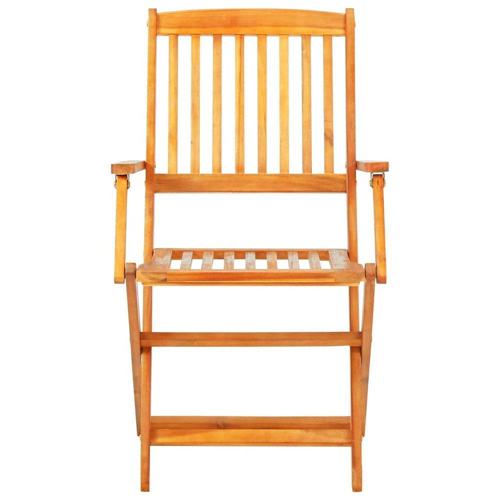 De tuinset is gemaakt van hoogwaardig acaciahout, een tropisch hardhout dat waterbestendig is en vele jaren meegaat. De olieafwerking is makkelijk schoon te maken met een vochtige doek. De tafel en stoelen kunnen worden ingeklapt, zodat ze ruimte besparen wanneer ze niet worden gebruikt.