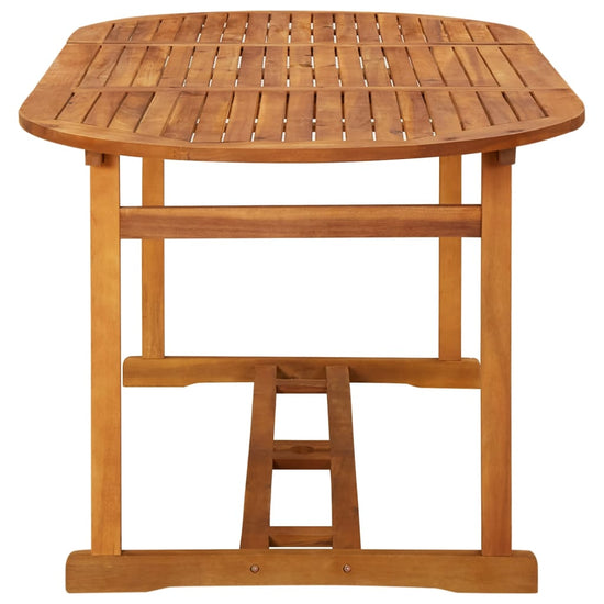 De tuinset is gemaakt van hoogwaardig massief acaciahout, een tropische hardhoutsoort die weerbestendig is en jarenlang meegaat. Het geoliede oppervlak kan eenvoudig worden schoongemaakt met een vochtige doek. Daarnaast kunnen de terrasstoelen worden ingeklapt tot een compact formaat, om ruimte te besparen wanneer ze niet in gebruik zijn.