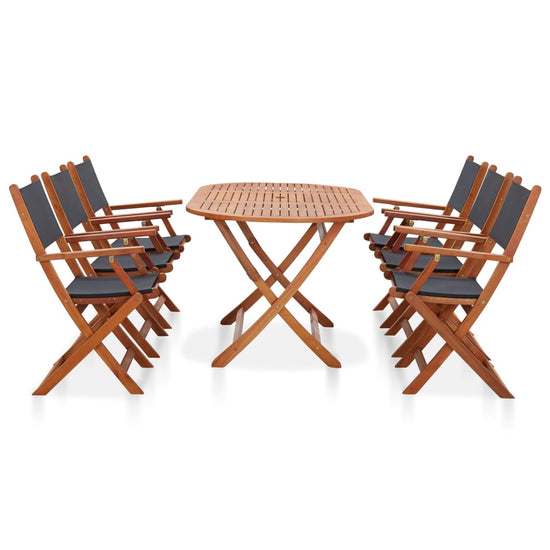 De inklapbare eetset is gemaakt van massief eucalyptushout en textileen, waardoor hij weerbestendig en duurzaam is. Bovendien is het met olie afgewerkte oppervlak gemakkelijk schoon te maken met een vochtige doek. Dankzij het inklapbare ontwerp is de tuinset eenvoudig op te bergen en te vervoeren.