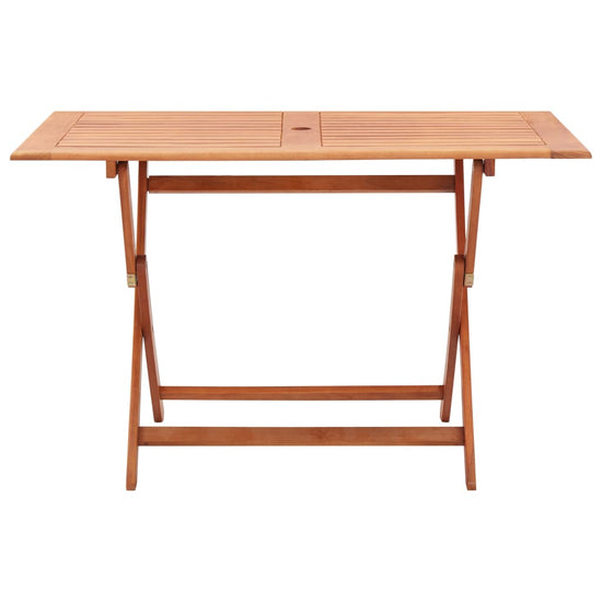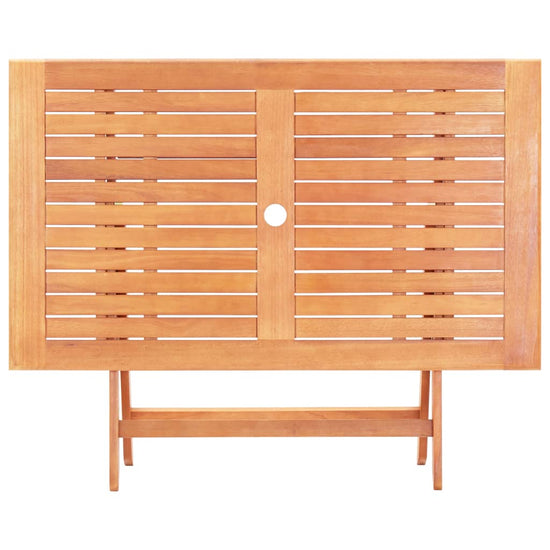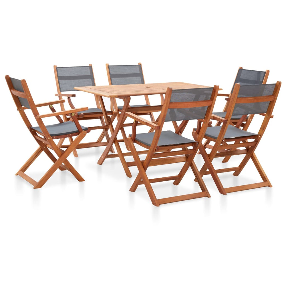 De eetset is gemaakt van massief eucalyptushout, dat weerbestendig en zeer duurzaam is. De eetstoelen hebben een ergonomisch ontwerp waardoor ze optimaal zitcomfort bieden. Het met olie afgewerkte oppervlak is eenvoudig schoon te maken met een vochtige doek. De set is inklapbaar zodat hij ingeklapt kan worden om ruimte te besparen wanneer hij niet in gebruik is.