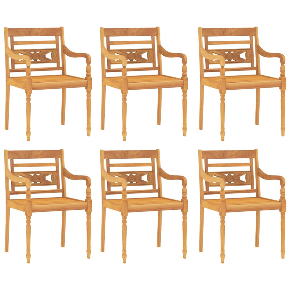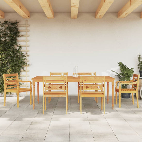 Geniet van een kopje thee of een heerlijk diner in je tuin met deze houten Batavia tuinset!Met delicate, gebogen armleuningen en decoratief houtsnijwerk wordt deze tuinmeubelset het middelpunt van je tuin en terras!