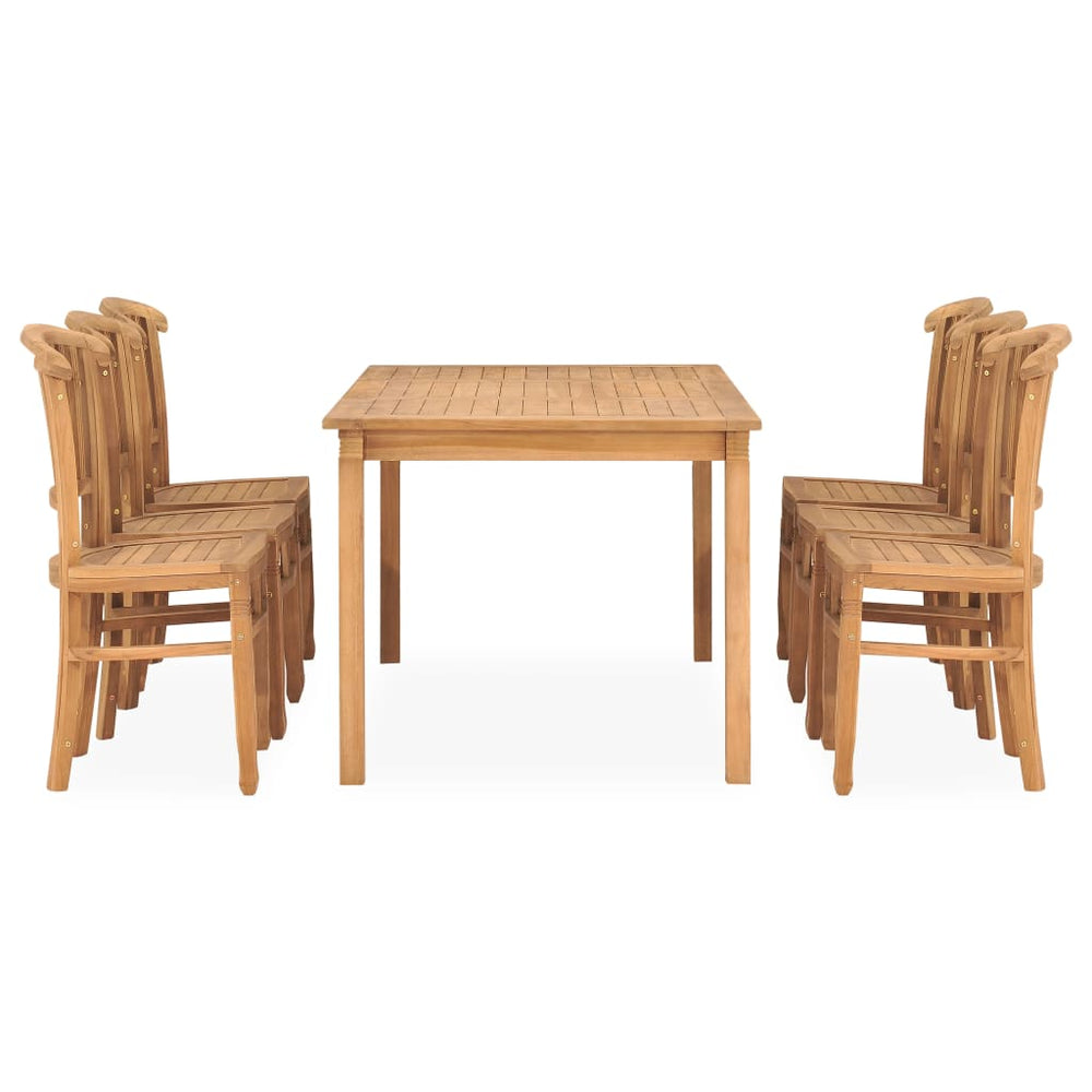 Deze massief teakhouten tuinmeubelset geeft je buitenruimte een vleugje elegantie en verfijning.