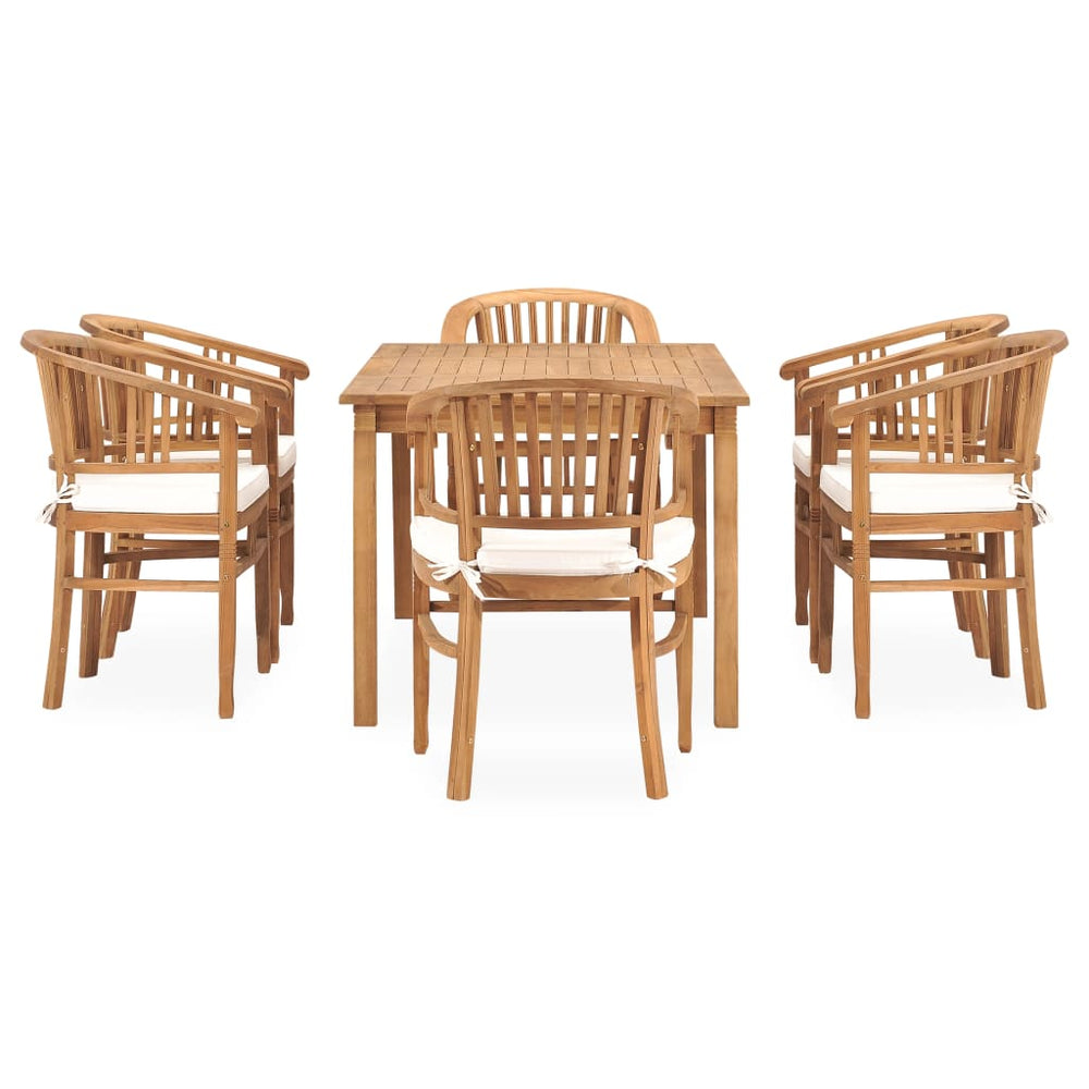 Deze massief teakhouten tuinmeubelset geeft je buitenruimte een vleugje elegantie en verfijning.