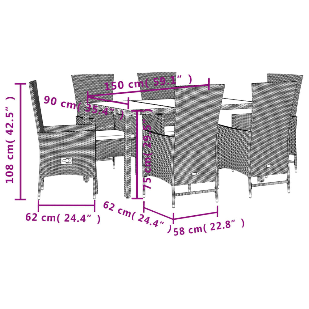 - Materiaal: PE-rattan, gepoedercoat staal en gehard glas