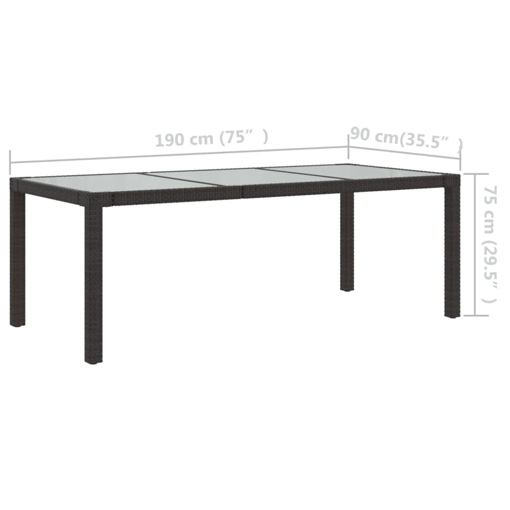 - Materiaal: poly rattan, gepoedercoat staal en gehard glas