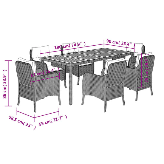 - Materiaal: PE-rattan, gepoedercoat staal en massief acaciahout met olieafwerking