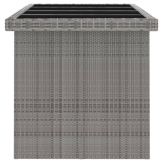 - Materiaal: PE-rattan, gepoedercoat staal, stof (100% polyester) en glas