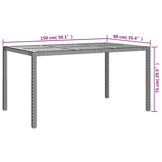 - Materiaal: PE-rattan, gepoedercoat staal en massief acaciahout met een natuurlijke olieafwerking