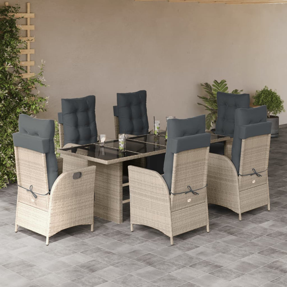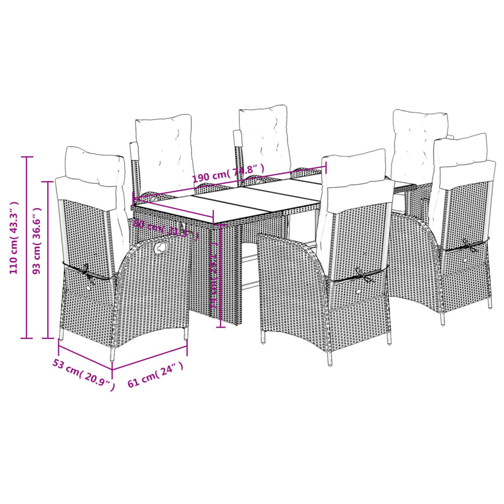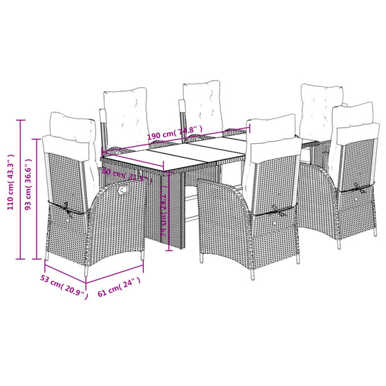 - Materiaal: PE-rattan, gepoedercoat staal en gehard glas