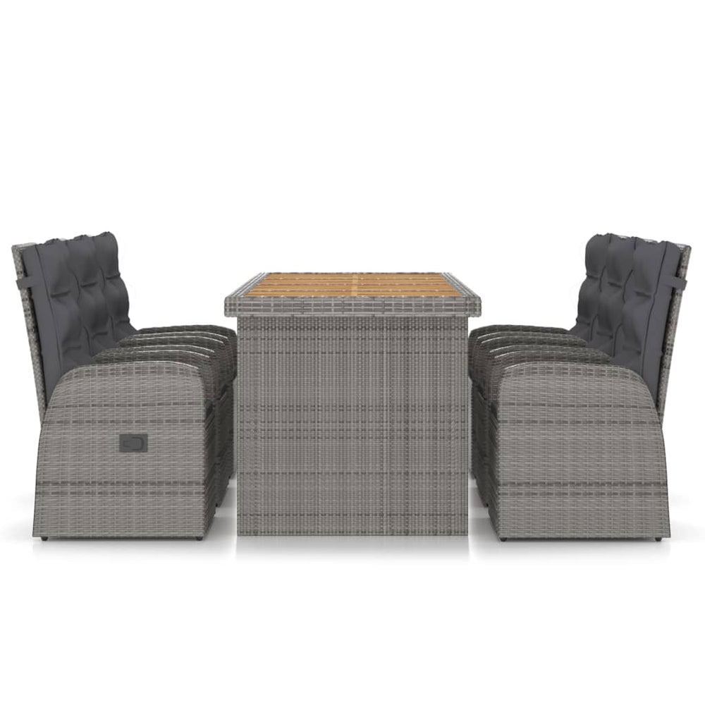 Deze tuinmeubelset heeft een stevig gepoedercoat stalen frame, dat zeer stabiel en duurzaam is. Dankzij de PE-rattan is de eethoek eenvoudig te reinigen, slijtvast en geschikt voor dagelijks buitengebruik. Het tafelblad is gemaakt van massief acaciahout, een tropisch hardhout dat weerbestendig en duurzaam is. De verstelbare stoelen bieden optimaal zitcomfort en geweldige ondersteuning. De rugleuning kan eenvoudig versteld worden met behulp van de knop aan de zijkant. De dikke, zachte zit- en rugkussens zijn zeer comfortabel.