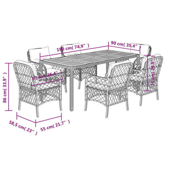 - Materiaal: PE-rattan, gepoedercoat staal en massief acaciahout met een olieafwerking