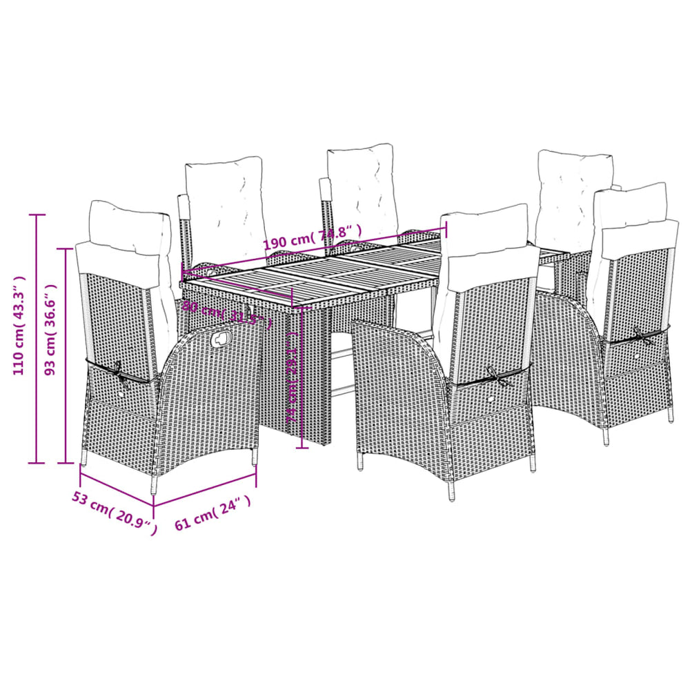 - Materiaal: PE-rattan, gepoedercoat staal en massief acaciahout met olieafwerking
