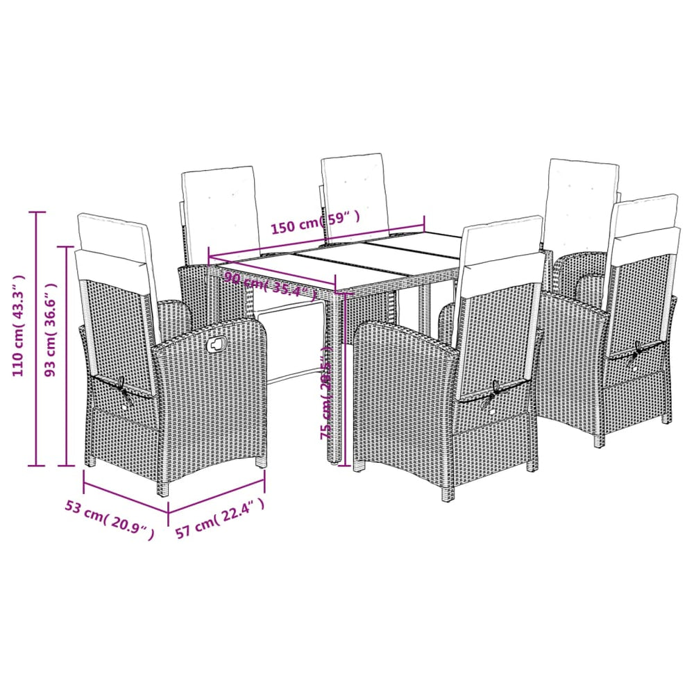 - Materiaal: PE-rattan, gepoedercoat staal en gehard glas