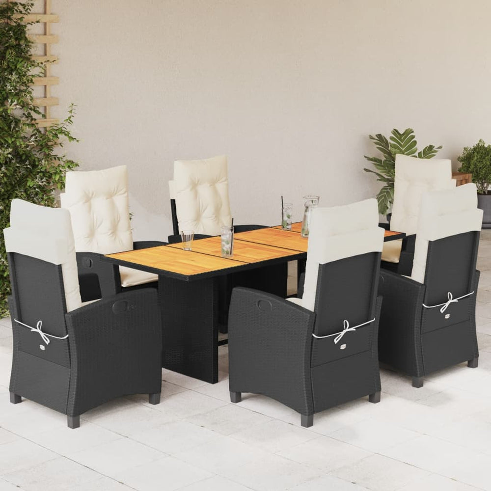 - Materiaal: PE-rattan, gepoedercoat staal en massief acaciahout met olieafwerking