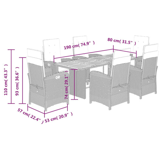 - Materiaal: PE-rattan, gepoedercoat staal en massief acaciahout
