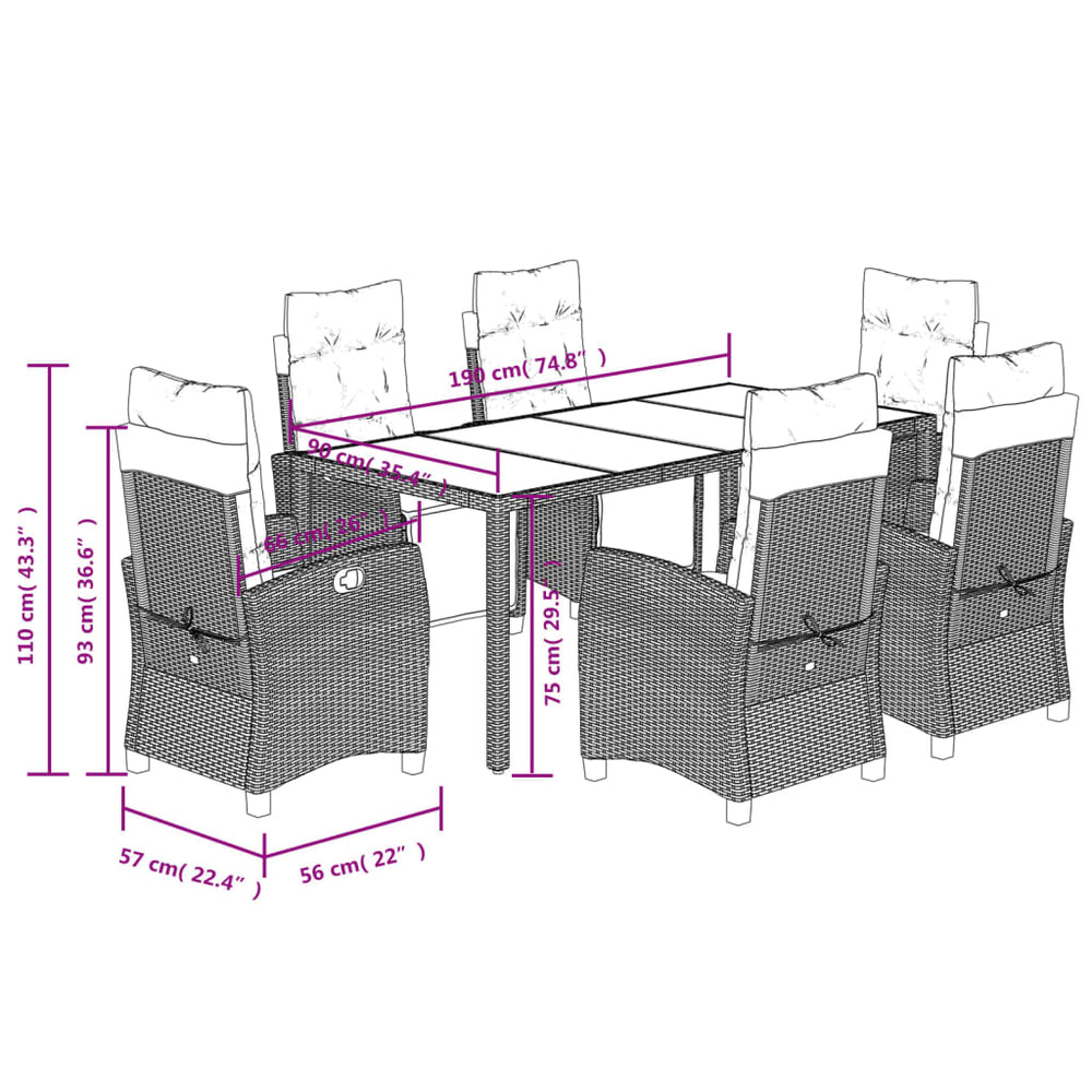 - Materiaal: PE-rattan, gepoedercoat staal en gehard glas