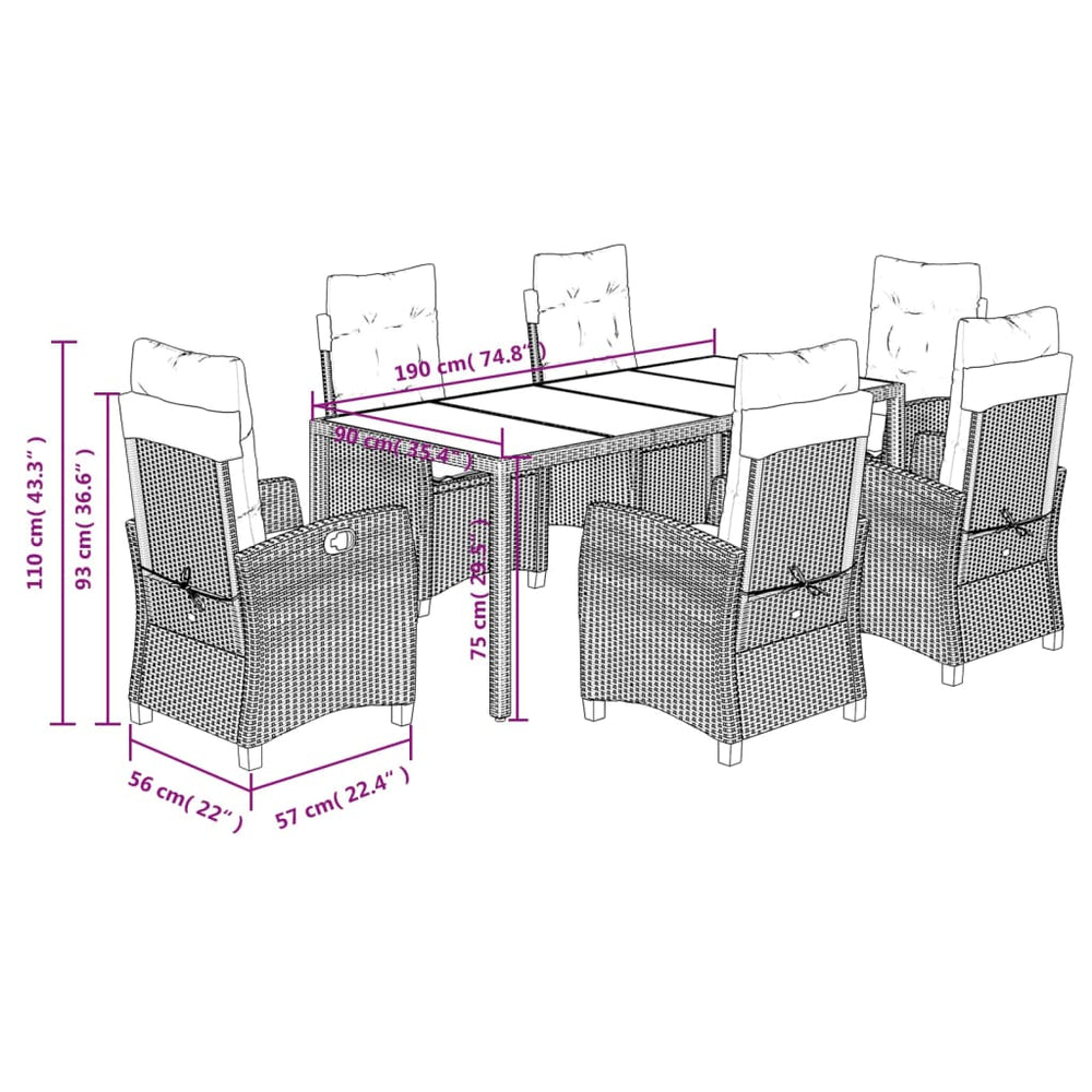 - Materiaal: PE-rattan, gepoedercoat staal en gehard glas