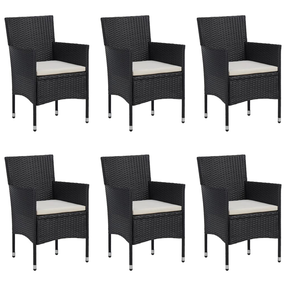 De eettafel is gemaakt van massief acaciahout, waardoor hij stevig en stabiel is. Het met olie afgewerkt oppervlak maakt de tafel geschikt voor buitengebruik. De eetstoelen hebben een stalen frame bedekt met weerbestendig PE-rattan, waardoor ze stevig en eenvoudig te reinigen zijn. De dik gevoerde kussens bieden extra zitcomfort.