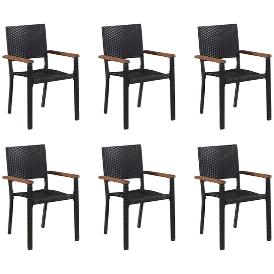 De eettafel is gemaakt van massief acaciahout met een olieafwerking, waardoor hij stabiel, duurzaam en gemakkelijk te onderhouden is. De eetstoelen hebben een gepoedercoat stalen frame bedekt met weerbestendig PE-rattan waardoor ze stevig en gemakkelijk schoon te maken zijn.