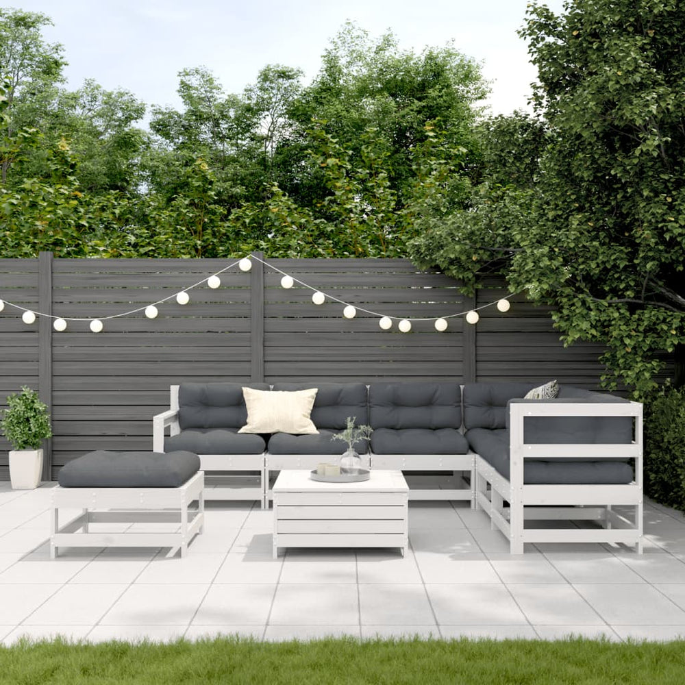 8-delige Loungeset met kussens massief grenenhout wit