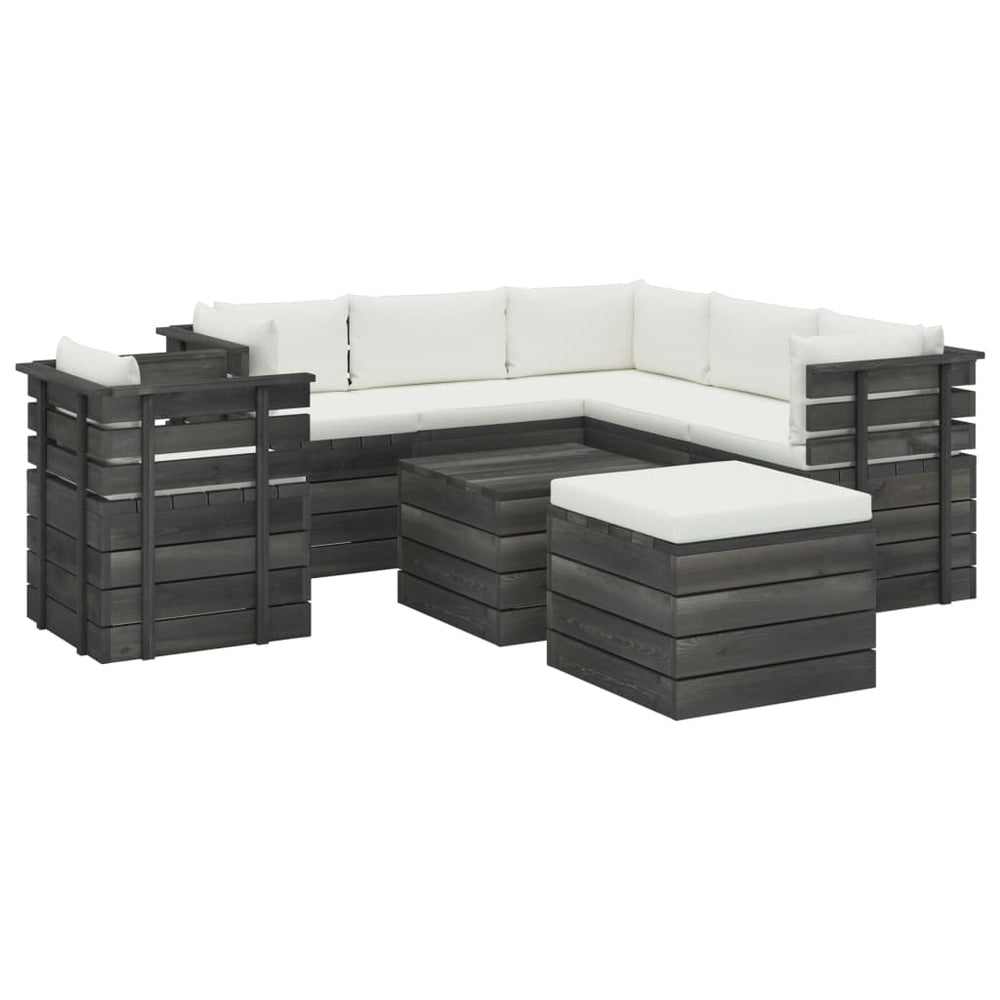De tuinmeubelset is gemaakt van massief grenenhout waardoor hij duurzaam en stabiel is. Deze set heeft een massieve constructie en vereist weinig onderhoud. Het stevige tafelblad is ideaal om eten en drinken binnen handbereik te houden. Dankzij de 100% polyester bekleding en dikke vulling zijn de palletkussens zacht en zeer comfortabel. Bovendien maakt het modulaire ontwerp het mogelijk om de set in elke gewenste samenstelling te plaatsen.