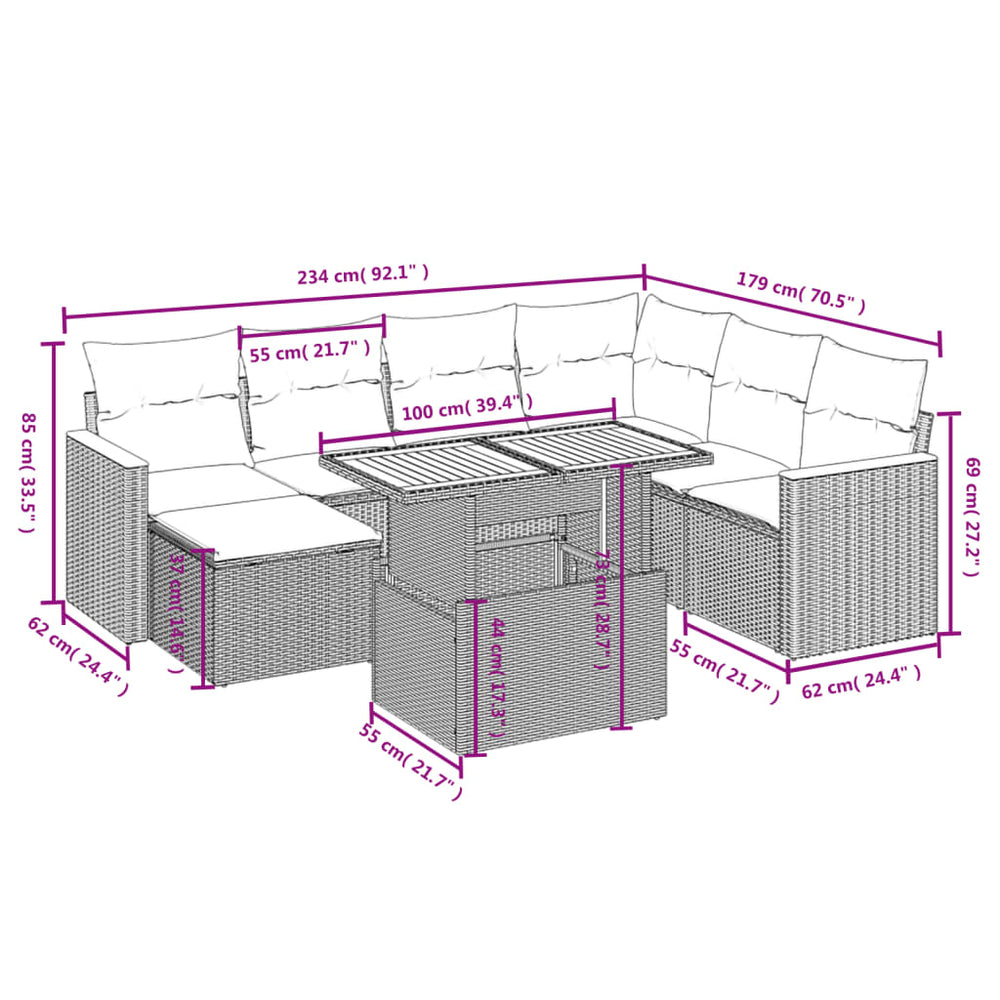 • 7 x zitkussen met afneembare en wasbare hoes