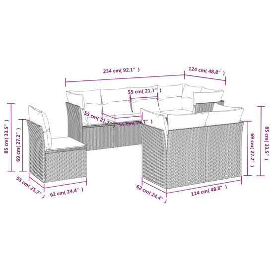 - Totale afmetingen 5-zitsbank: 234 x 124 x 69 cm (B x D x H)