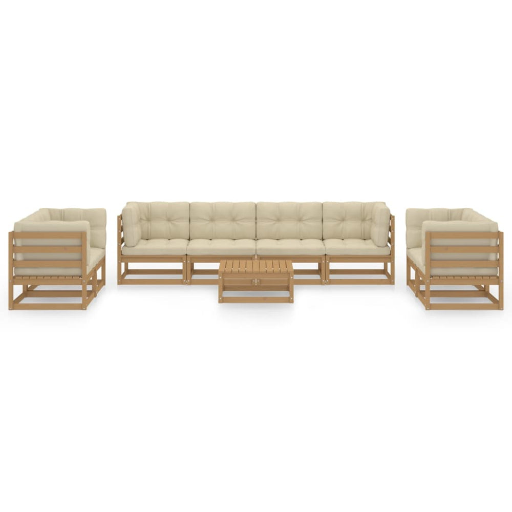 De set is gemaakt van massief grenenhout, waardoor hij stevig en stabiel is. De kussens bieden extra comfort. Je kunt hem combineren met andere modulaire segmenten om zo je eigen persoonlijke loungeset samen te stellen!
