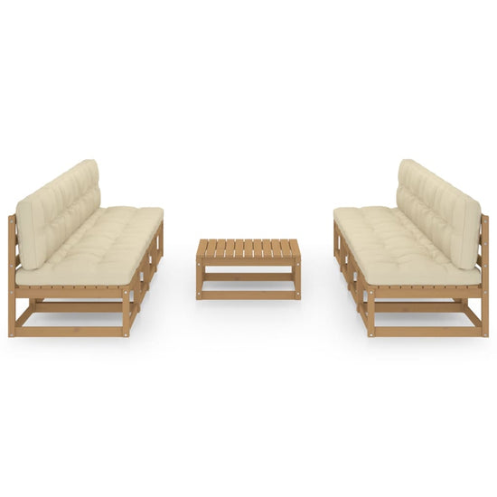 De set is gemaakt van massief grenenhout, waardoor hij stevig en stabiel is. De kussens bieden extra comfort. Je kunt hem combineren met andere modulaire segmenten om zo je eigen persoonlijke loungeset samen te stellen!