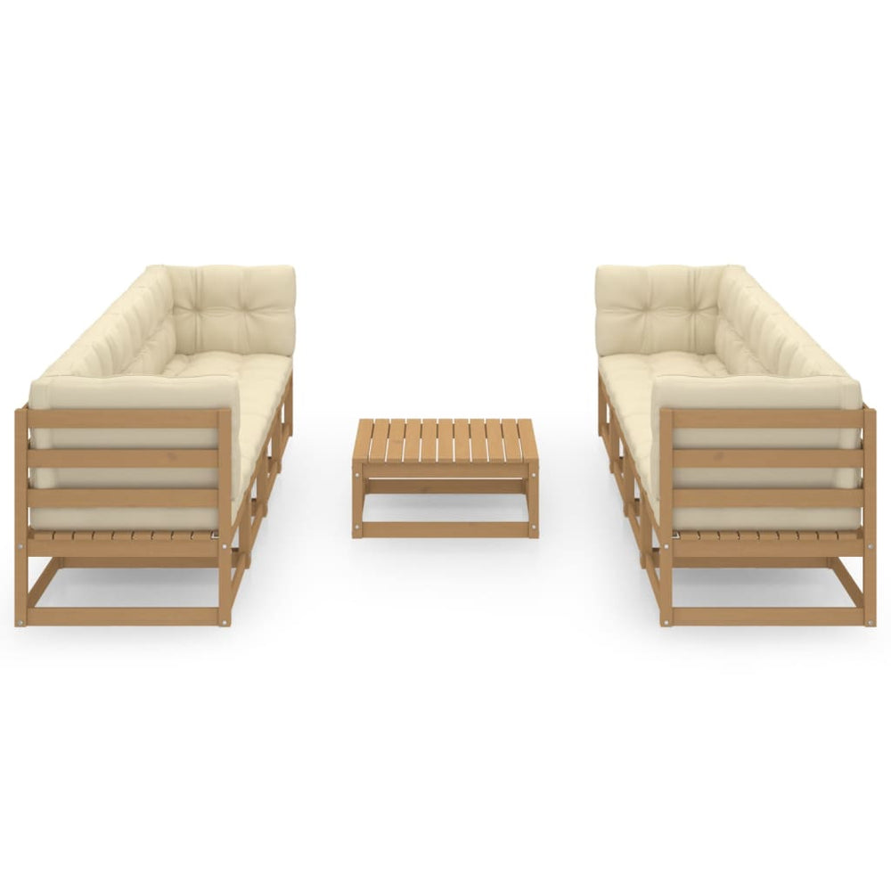 De set is gemaakt van massief grenenhout, waardoor hij stevig en stabiel is. De kussens bieden extra comfort. Je kunt hem combineren met andere modulaire segmenten om zo je eigen persoonlijke loungeset samen te stellen!