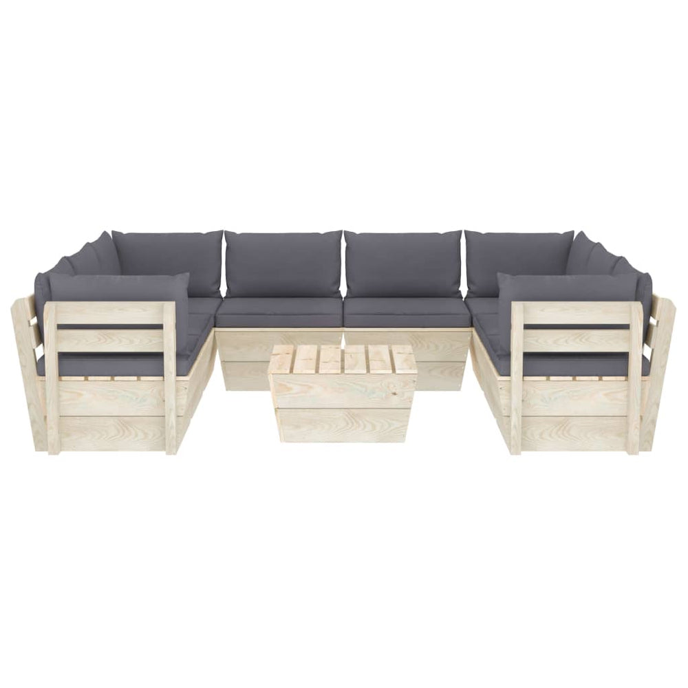 De tuinmeubelset is gemaakt van geïmpregneerd vurenhout waardoor hij duurzaam en stabiel is. Deze set heeft een massieve constructie en vereist weinig onderhoud. Het stevige tafelblad is ideaal om eten en drinken binnen handbereik te houden. Dankzij de 100% polyester bekleding en dikke vulling zijn de palletkussens zacht en zeer comfortabel. Bovendien maakt het modulaire ontwerp het mogelijk om de set in elke gewenste samenstelling te plaatsen.