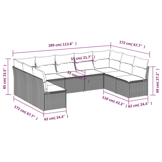 - Totale afmetingen van de bank: 289 x 172 x 69 cm (B x D x H)