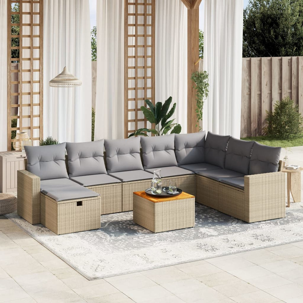 - Materiaal: PE-rattan, gepoedercoat staal en massief acaciahout met olieafwerking