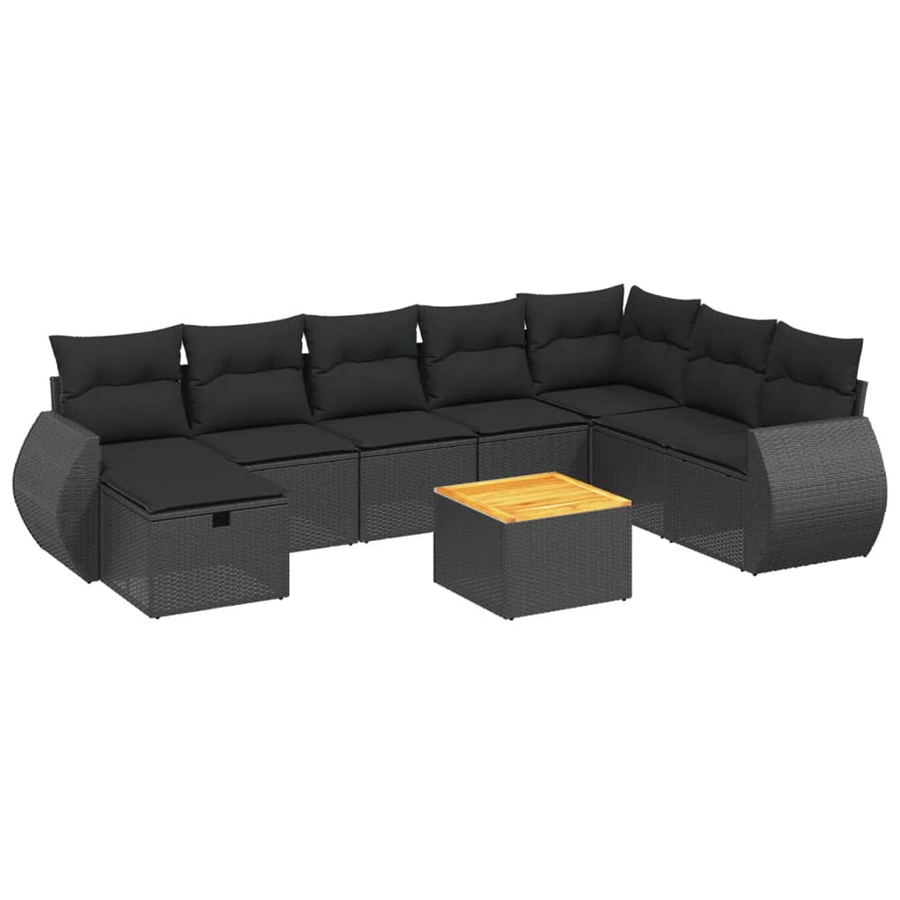 - Materiaal: PE-rattan, gepoedercoat staal en massief acaciahout met olieafwerking