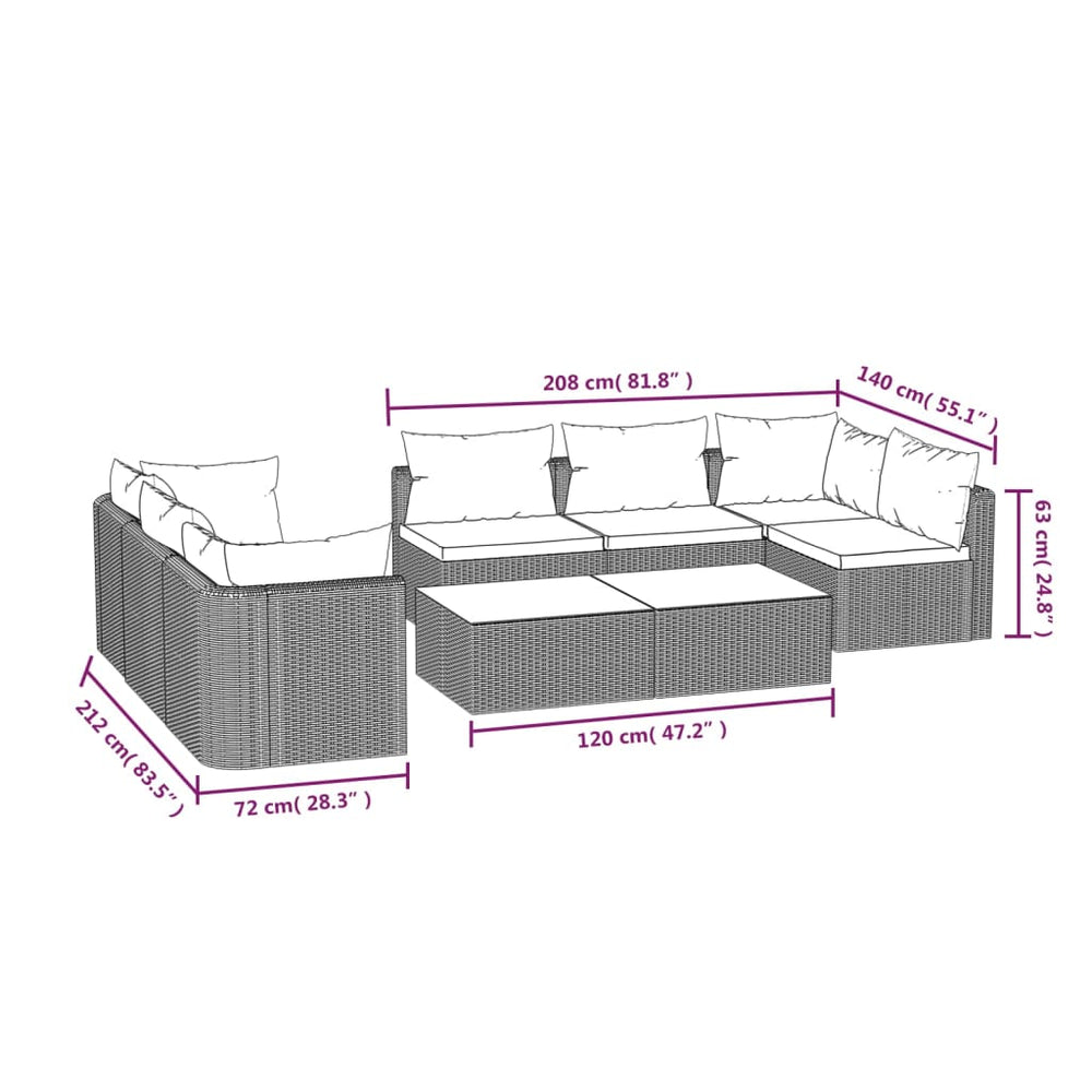 De 9-delige set is zeer veelzijdig en kan je blijven herschikken. Hij is gemaakt van duurzaam handgeweven PE-rattan over een gepoedercoat stalen frame, waardoor de set sterk, stevig een weerbestendig is. Dankzij de PE-rattan is de loungeset eenvoudig te reinigen, robuust en geschikt voor dagelijks gebruik. De dik gevoerde kussens en extra diepe, moderne zitting zorgen ervoor dat je volledig kan ontspannen. De hoezen van de zitkussens hebben een rits zodat ze eenvoudig verwijderd en gewassen kunnen worden. De salontafel heeft een 5 mm dik gehard glazen blad dat erg stijlvol en gemakkelijk schoon te maken is. Daarnaast zorgt het lichtgewicht en modulaire ontwerp ervoor dat je deze set eenvoudig kunt verplaatsen.