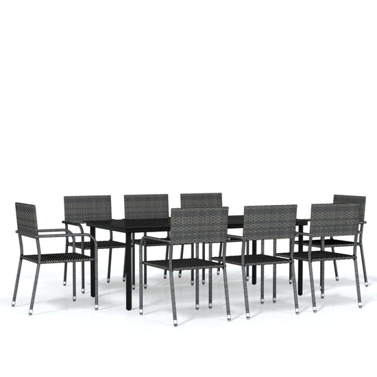 De praktische buiteneetset heeft een stalen frame waardoor hij sterk en stevig is. De tuinstoelen zijn gemaakt van waterbestendig en onderhoudsvrij PE-rattan, waardoor ze perfect zijn voor buitengebruik. Deze tuinstoelen zijn lichtgewicht en kunnen gestapeld worden om ruimte te besparen wanneer ze niet gebruikt worden. Het gladde, glazen tafelblad is gemakkelijk schoon te maken met een vochtige doek en is perfect voor het plaatsen van maaltijden, drankjes en decoratieve objecten.