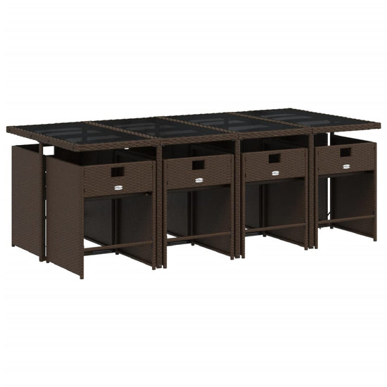 - Materiaal: PE-rattan, gepoedercoat staal en gehard glas