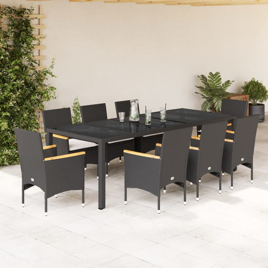 - Materiaal: PE-rattan, gepoedercoat staal en massief acaciahout met olieafwerking