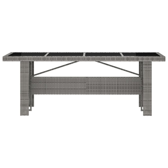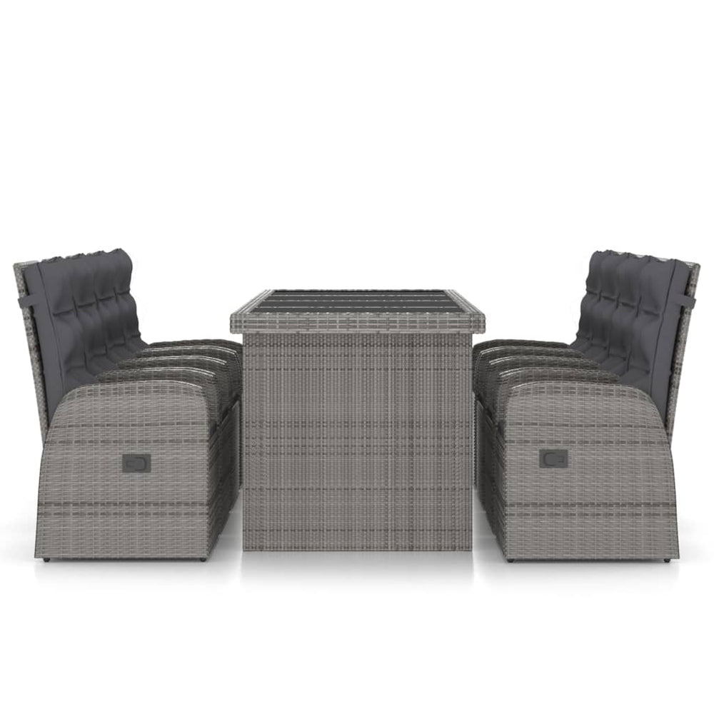 Deze tuinmeubelset heeft een stevig gepoedercoat stalen frame, dat zeer stabiel en duurzaam is. Dankzij de PE-rattan is de eethoek eenvoudig te reinigen, slijtvast en geschikt voor dagelijks buitengebruik. Het glazen tafelblad is eenvoudig te reinigen met een vochtige doek. De verstelbare stoelen bieden optimaal zitcomfort en geweldige ondersteuning. De rugleuning kan eenvoudig versteld worden met behulp van de knop aan de zijkant. De dikke, zachte zit- en rugkussens zijn zeer comfortabel.