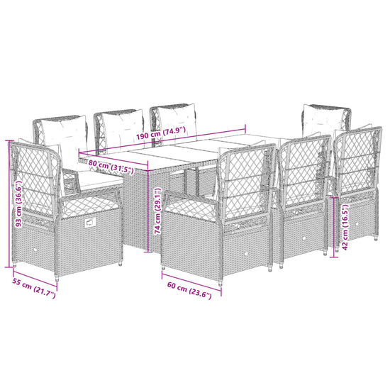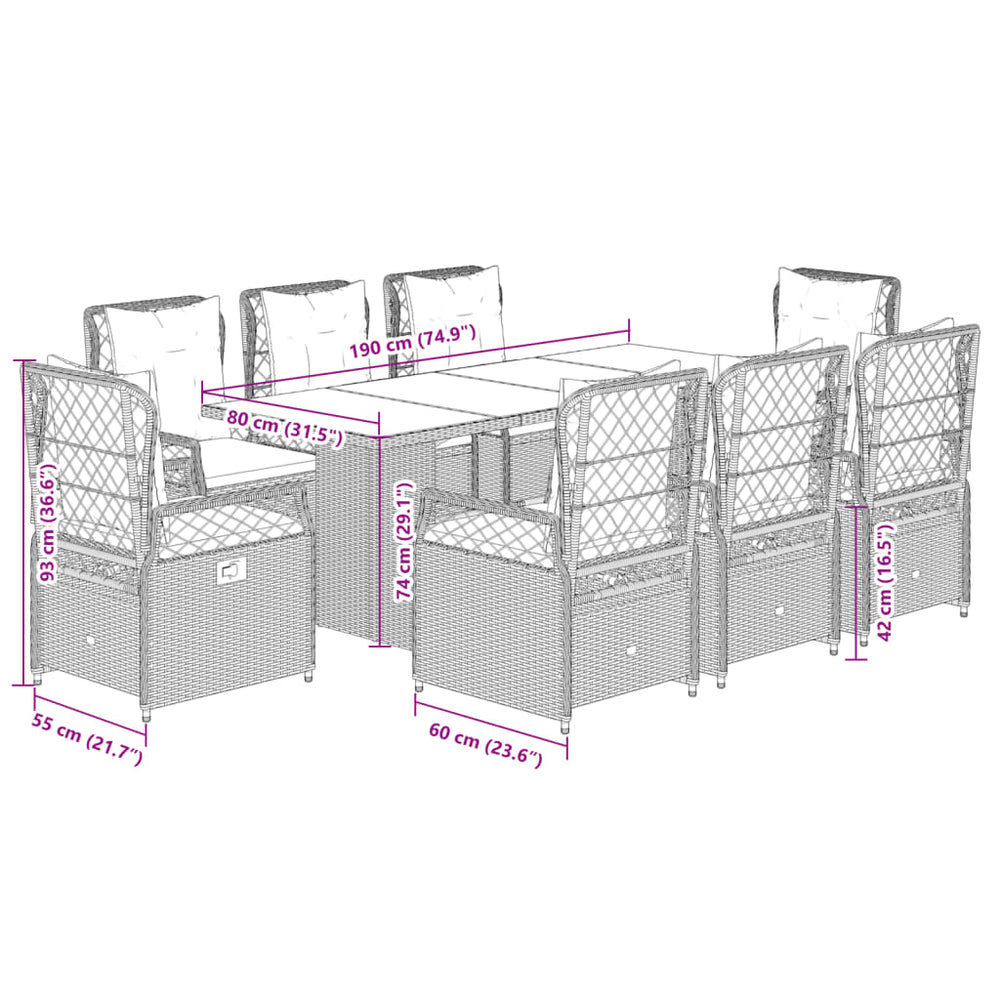 9-delige Tuinset met kussens poly rattan lichtgrijs
