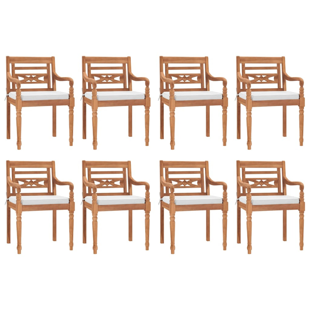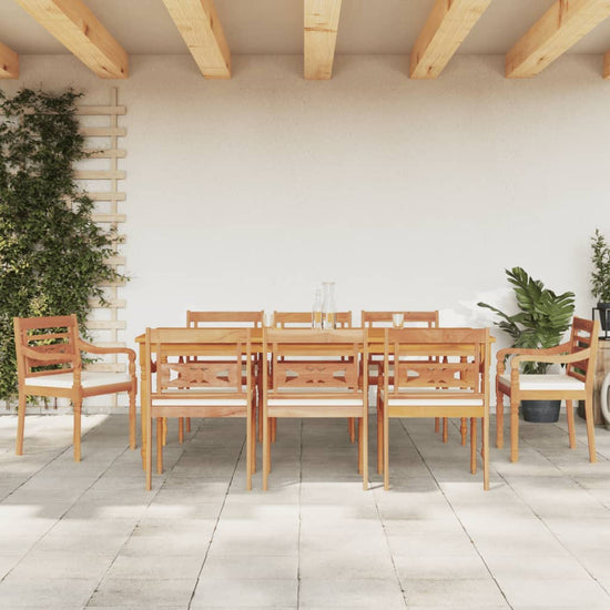 Geniet van een kopje thee of een heerlijk diner in je tuin met deze houten Batavia tuinset!Met delicate, gebogen armleuningen en decoratief houtsnijwerk wordt deze tuinmeubelset het middelpunt van je tuin en terras!