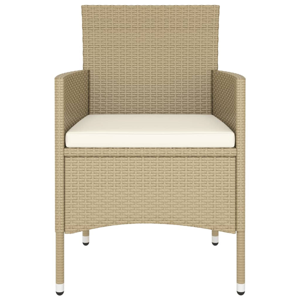 Dankzij het gepoedercoat stalen frame dat bedekt is met waterbestendig PE-rattan met uv-bescherming, zijn deze tafel en stoelen duurzaam en stabiel. Dankzij het ontwerp met een gebogen rugleuning en armleuningen, bieden de stoelen comfort. Er zijn kussens inbegrepen voor extra comfort en de hoes met rits is afneembaar, zodat hij eenvoudig gewassen kan worden. Het tafelblad is van versterkt, gehard glas gemaakt, waardoor het eenvoudig te reinigen en onderhouden is. De 4 voetsteunen bieden ook extra zitplekken. Omdat de constructie lichtgewicht is, is elk meubelstuk eenvoudig te verplaatsen.