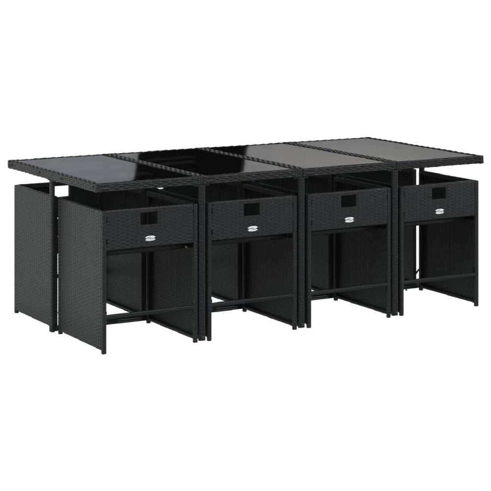 - Materiaal: PE-rattan, gepoedercoat staal en gehard glas